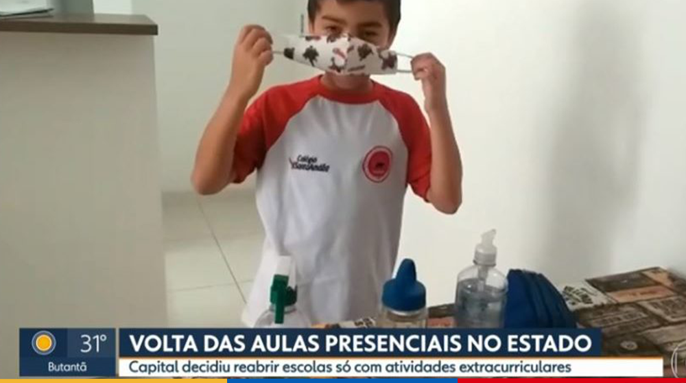 No início da matéria, o nosso aluno, Miguel Aniz contou todo animado a sua felicidade em voltar para a escola, após 200 dias.